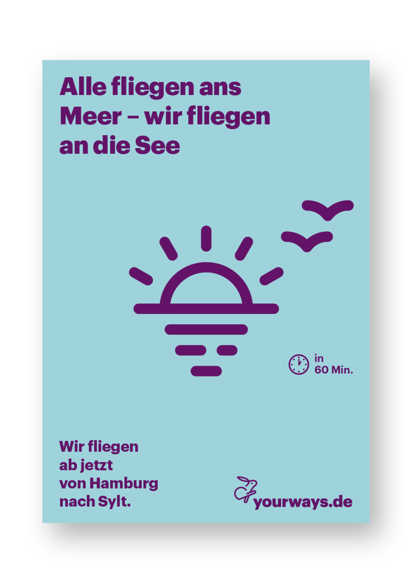 Für die norddeutsche Inselairline yourways, die Dachmarke der Boutique Jet Charter Airline privateways, haben wir das bestehende Corporate Design weiterentwickelt und die Kommunikation der Markteinführung begleitet. Leider gibt es das tolle Startup – trotz vieler Fans – heute nicht mehr.